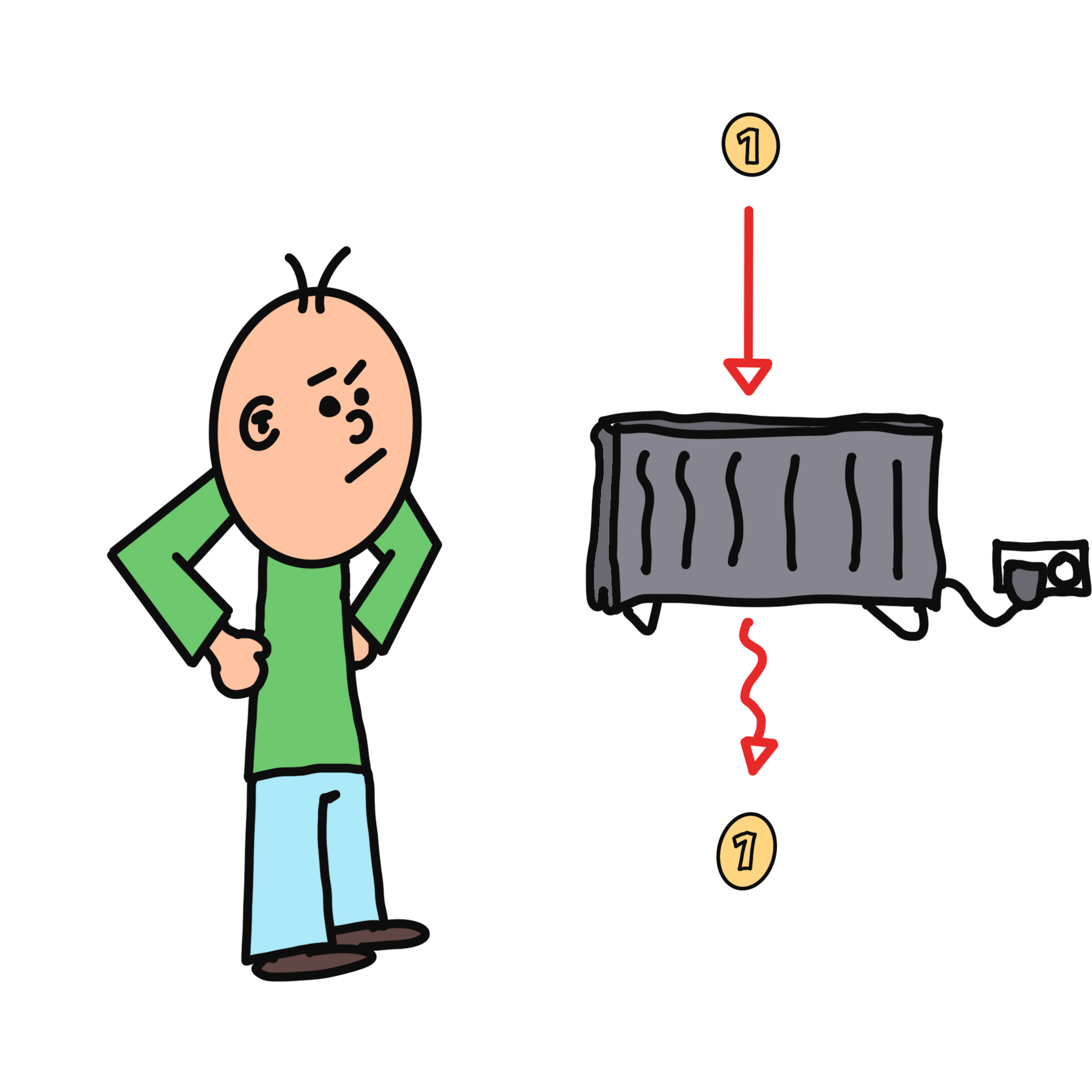 Tenk deg at du har 1 krone. Hvis du bruker den på en vanlig panelovn, får du 1 krone i varme tilbake – ikke mer, ikke mindre.